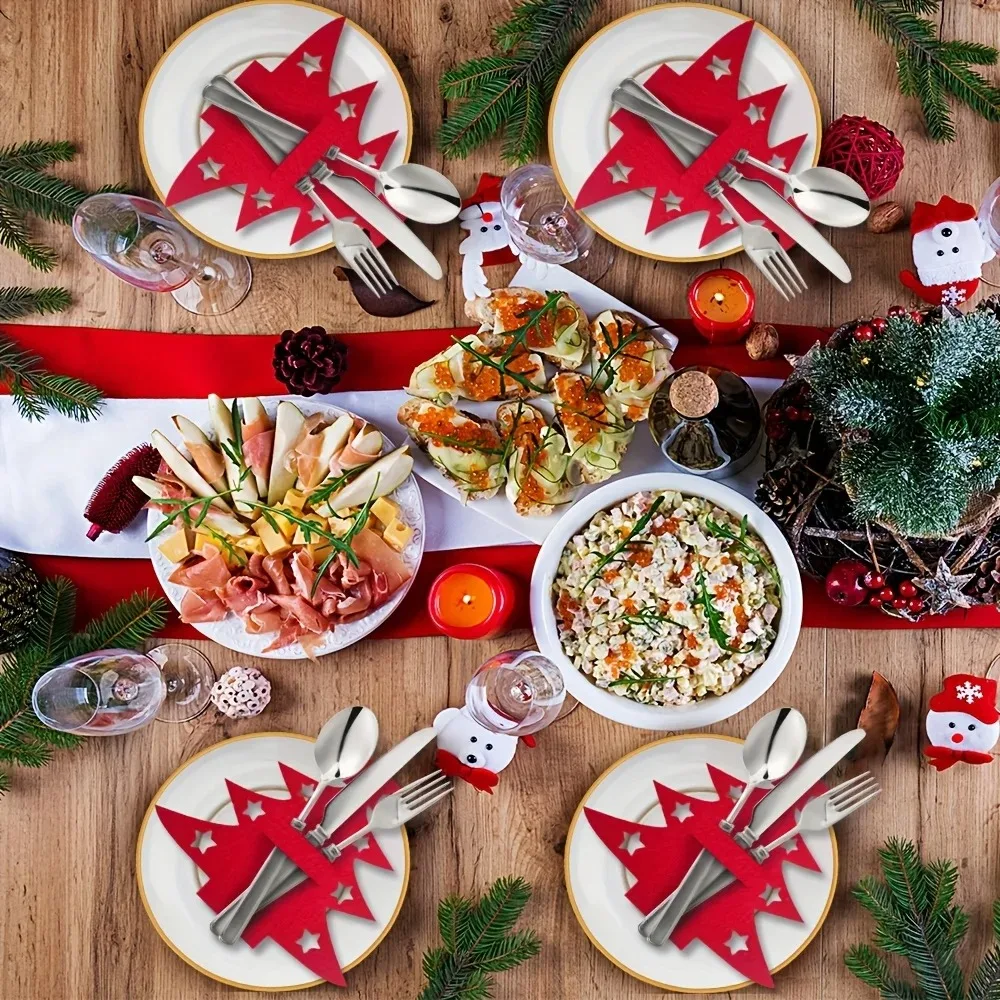 12pcs, Tree Placemats, Felt Fork and Spoon Bag Set,